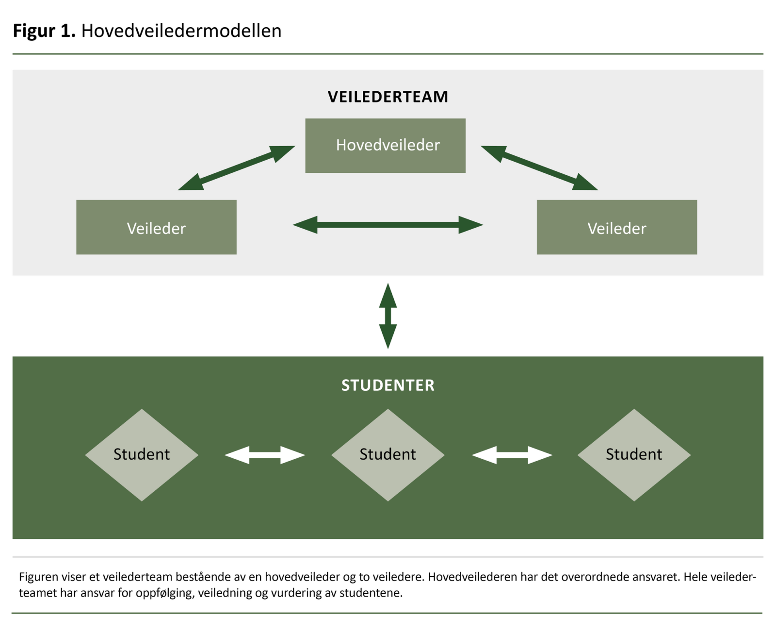 Gjennom veiledningsteamet hadde alle felles ansvar for den daglige veiledningen. Veiledere kan oppleve det som utfordrende å være alene i veilednings- og vurderingssituasjoner (7). Vår undersøkelse viser at flertallet av veilederne opplevde at hovedveilederne støttet dem i deres veilederfunksjon. De fleste av studentene opplevde at det var positivt for deres læringsprosess at avdelingen hadde veilederteam med en hovedveileder.