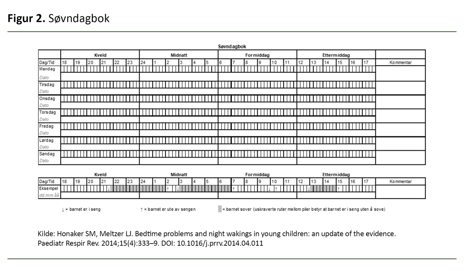 Det er få kartleggingsskjemaer som er oversatt til og validert på norsk. Også internasjonalt er det få som har gjennomgått grundig evaluering, men Spruyt og medarbeidere har likevel funnet at noen skjemaer kan være nyttige (8). Ifølge Pediatric Sleep Council (9) og Mindell og medarbeidere (10) bør kartleggingen inneholde disse opplysningene: