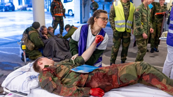 Maskinpistoler smeller. Minuttene teller. – Det er «train hard – fight easy» som gjelder. Her øves det på masseskader i Drammen.