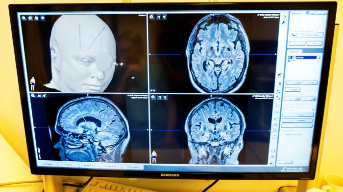 Fastspent, i våken tilstand, blir Finn Nortvedt operert i hjernen. Parkinsons sykdom kan ikke kureres, men han kan få et bedre liv.