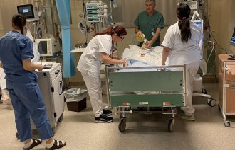 Bildet viser en eldre pasient som får sårbehandling
