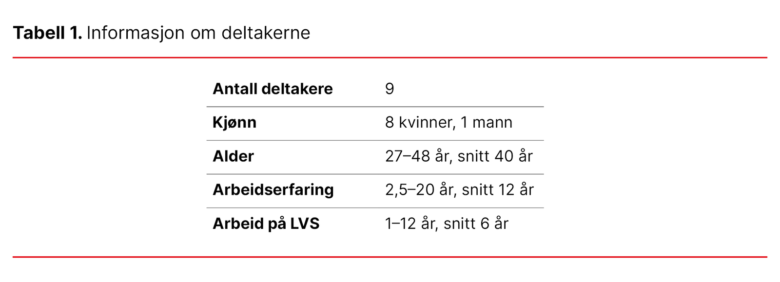 Deltakerne i denne studien er sykepleiere som jobber ved ulike legevaktssentraler i Norge (se tabell 1).