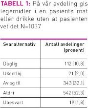 Resultat: Nesten halvparten av avdelingene oppgav at pasienten fikk tilsatt medisin i mat eller drikke uten at de visste det. Legen ble som regel, eller alltid, konsultert i 74 prosent av tilfellene, pårørende ble sjeldent konsultert (39 prosent av tilfellene). Ved tvil om et preparat kunne knuses, ble dette som regel eller alltid sjekket i 95 prosent av avdelingene. Felleskatalogen var den vanligste kilden til informasjon.