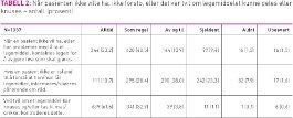 Nesten halvparten av avdelingene oppgav at de ga medisin knust i pasientenes mat eller drikke uten at pasientene visste det, i hvert fall av og til (tabell 1). Det var signifikant flere somatiske/ andre avdelinger som svarte at de aldri ga medisin uten at pasientene visste det, enn skjermede enheter (57,2 prosent vs 40,4 prosent; chi-kvadrat test p