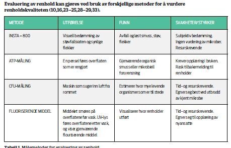 Litteraturen viser at det er behov for retningslinjer for metoder og minstefrekvens av renhold, samt en standardisert anbefaling for å evaluere det utførte renholdet.