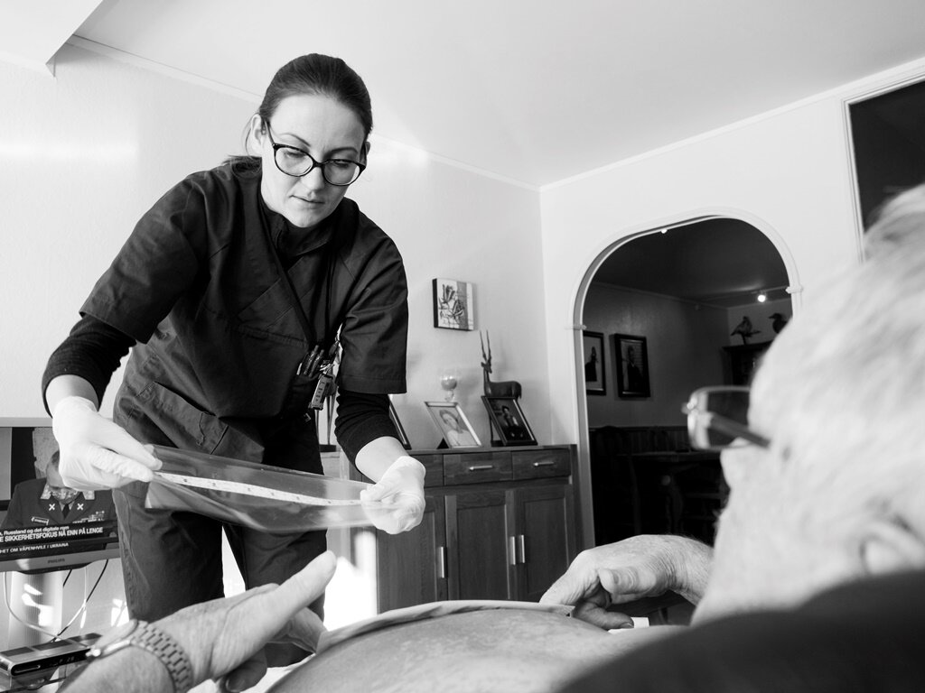De siste 20 årene har det foregått en gradvis nedbygging av institusjonstilbud i kommunene, samtidig som bruken av hjemmetjenester har økt (4–6). Utviklingen i Norge samsvarer med helsereformer i en rekke europeiske land (7,8). Evaluering av reformen viser at utskrivningsklare pasienter øker i antall, de skrives ut tidligere fra sykehuset, og er sykere ved utskriving (1). I tillegg plasseres ansvaret for forebygging, tidlig intervensjon, behandling og rehabilitering hos kommunehelsetjenesten (9). Det er med andre ord et betydelig helse- og sykepleiefaglig kompetansebehov i kommunene og ikke minst i hjemmesykepleien.