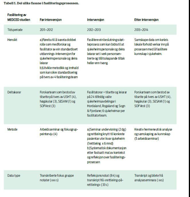 USHT i Vest har gjort seg erfaringar knytt til rolla som fasilitator og medforskar i MEDCED-prosjektet. Erfaringane baserer seg på systematiske analyser av refleksjonar i fokusgruppeintervju (4) og refleksjonsnotat (84) som vart skrive i tilknyting til MEDCED-studien [5].
