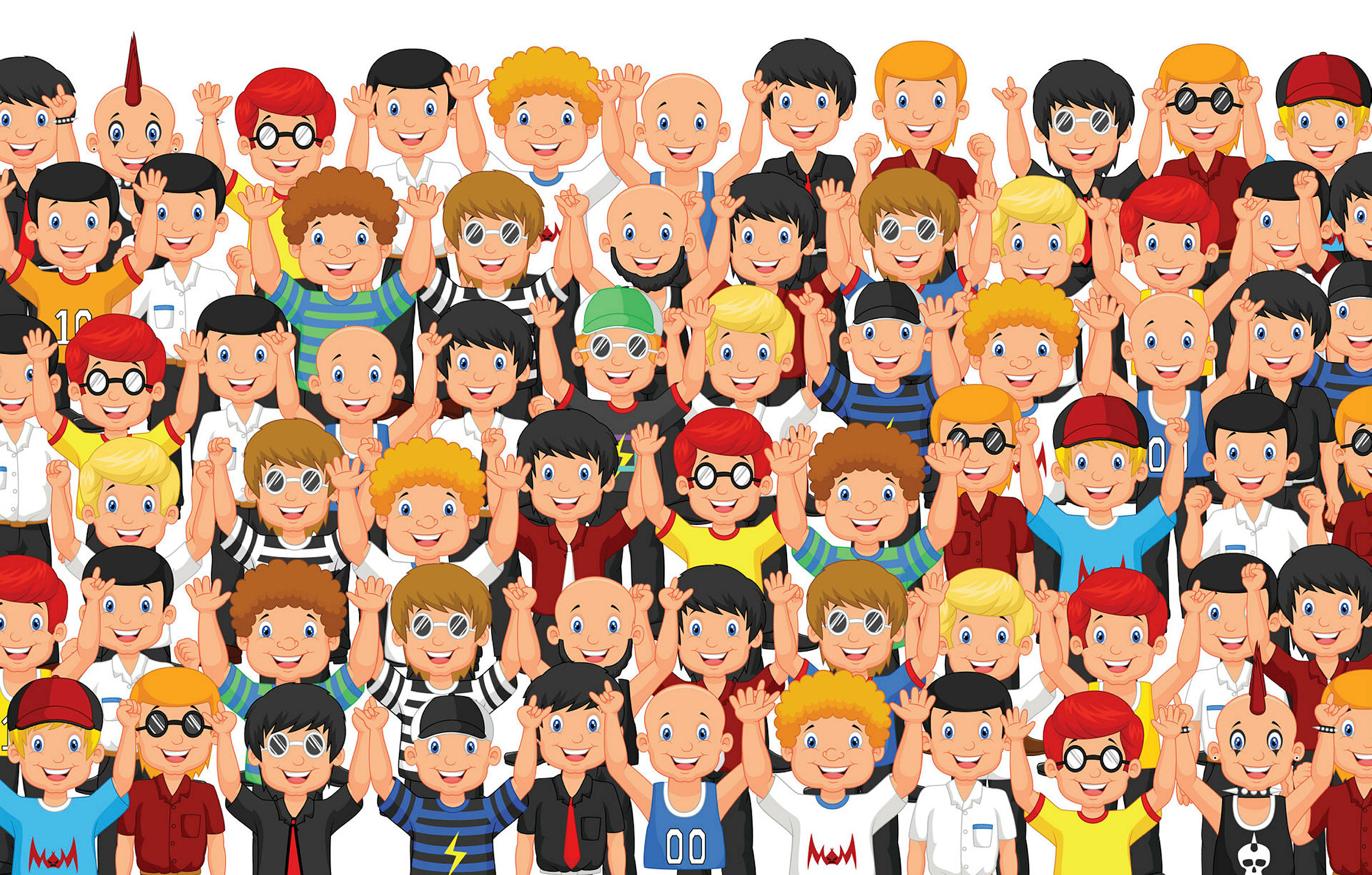 Illustrasjonen viser en mengde folk som jubler med hendene i været.