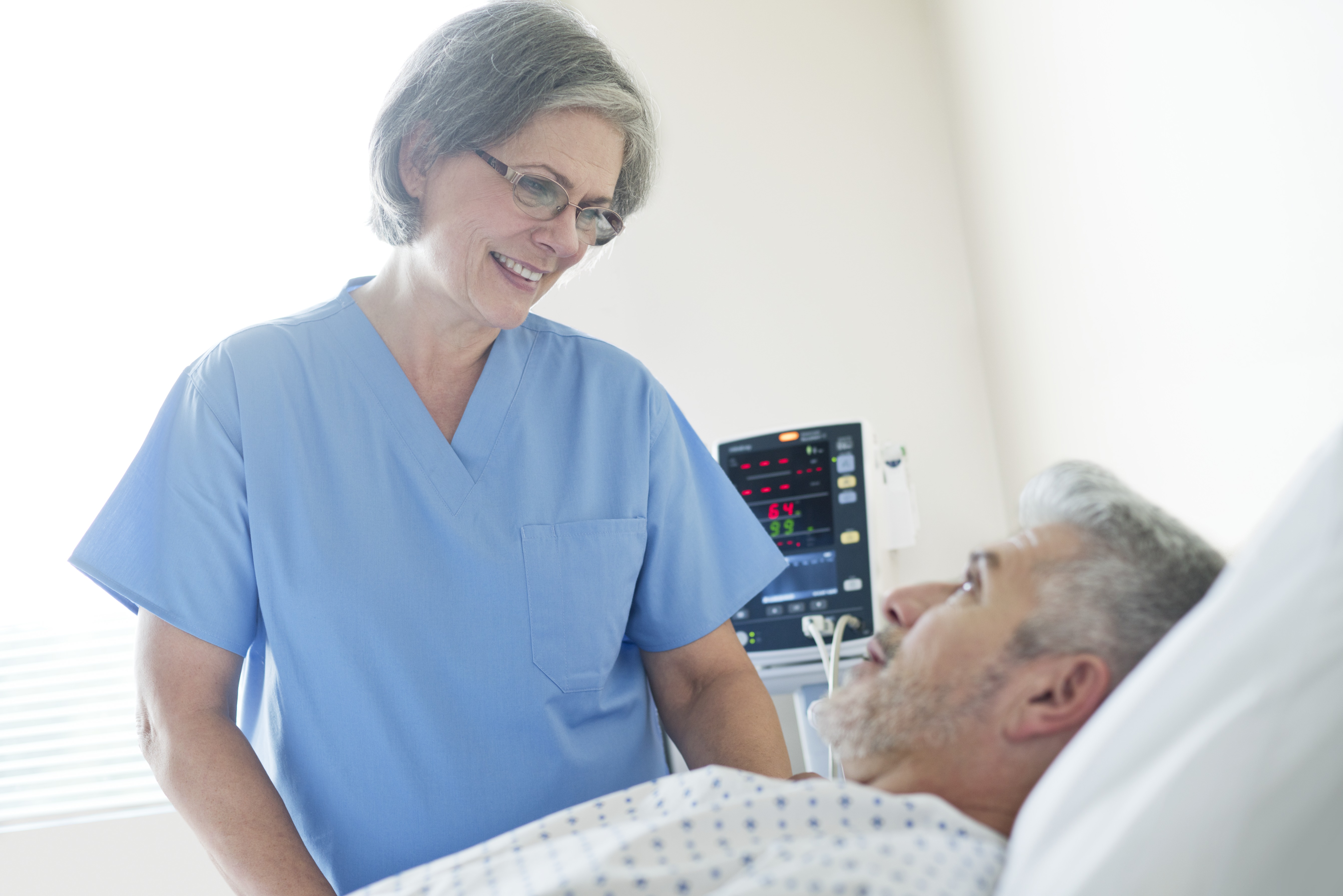 En sykepleier snakker med en pasient