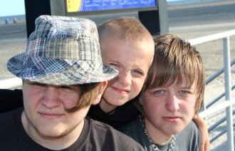 Bildet viser tre unge tenåringer som viser frem bicepsmusklene sine.