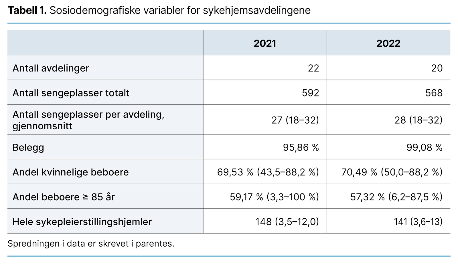 Tabell 1. Sosiodemografiske variabler for sykehjemsavdelingene