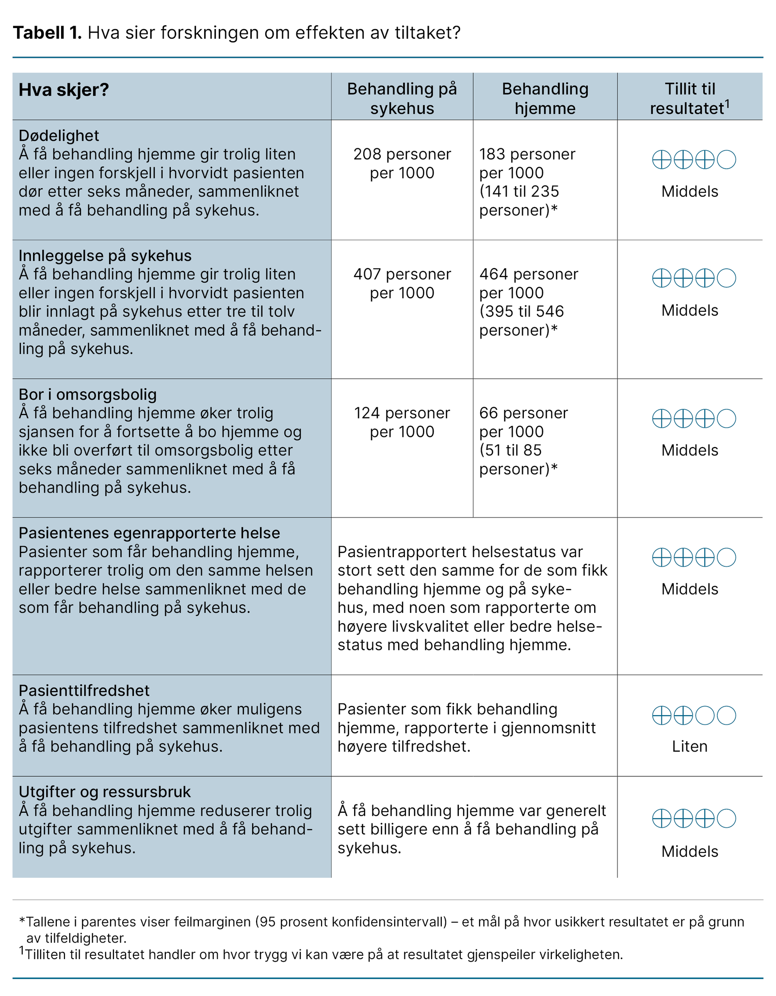 Hjemmebasert sykehusbehandling (1:2): Hva sier forskningen om effekten av tiltaket?