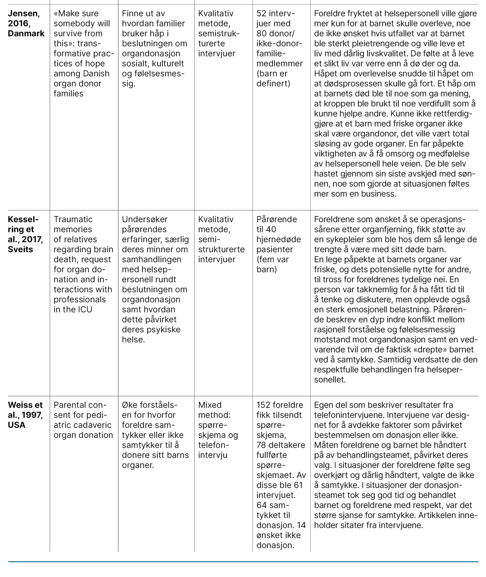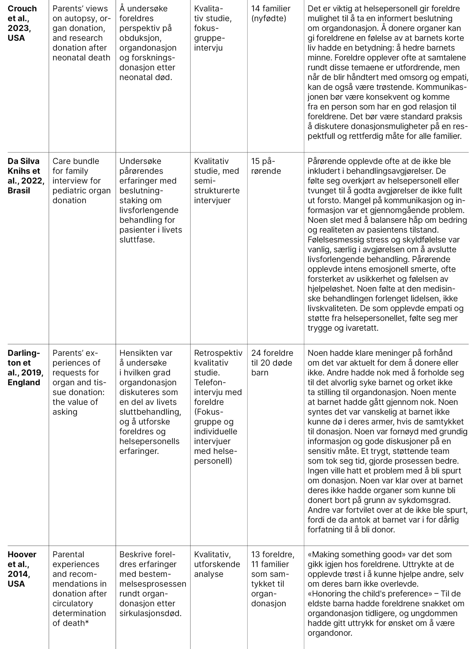 Pårørendes erfaringer med organdonasjon fra barn – en systematisk oversiktsstudie av kvalitative studier