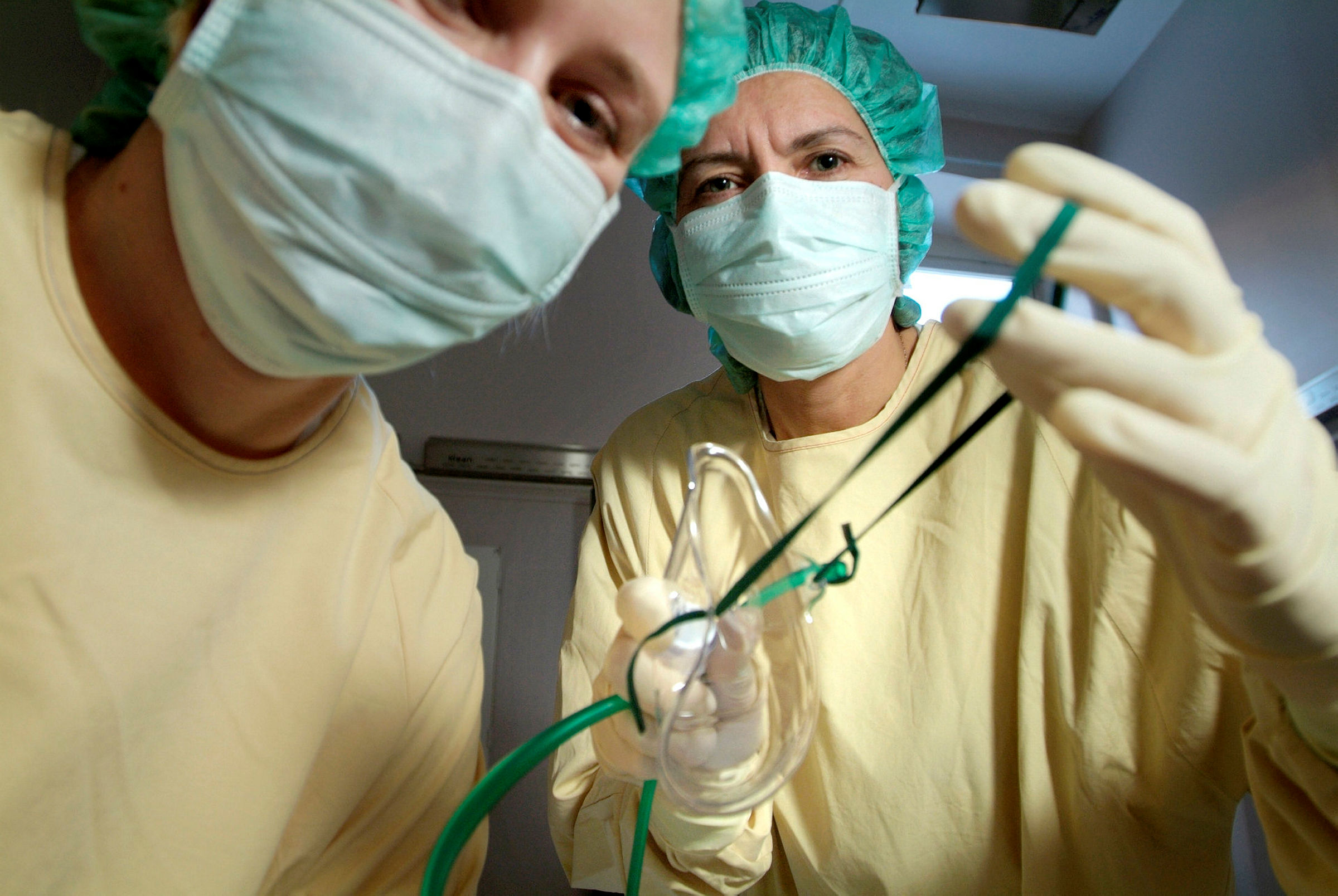 To sykepleiere med smittevernutstyr