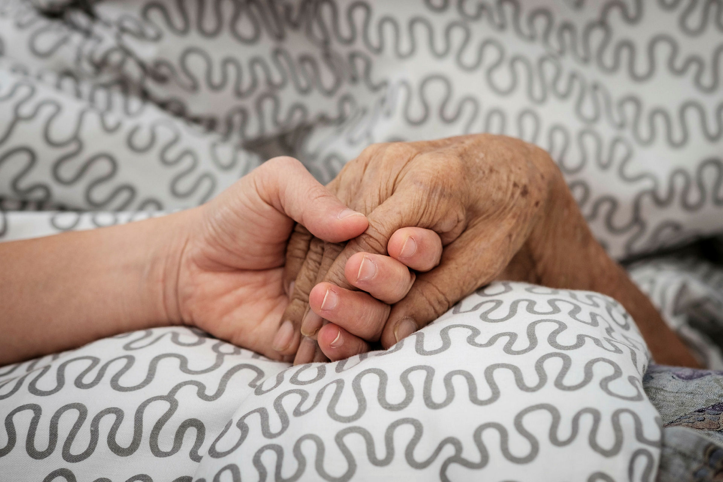 Ung hånd holder eldre