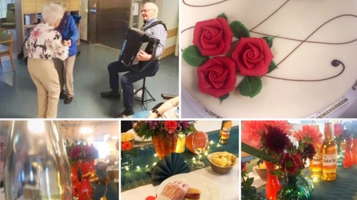 Vi holdt tre identiske fester på tre avdelinger samtidig. På denne måten klarte vi å overholde smittevernsregler samtidig som det ble skikkelig glad stemning. Trubadurene ble sluset inn på hver sin avdeling via forskjellig innganger på huset, og de satt i god avstand til pasientene. Vi ommøblerte avdelingene og fikk laget et langbord som var stort nok til at pasientene hadde korrekt avstand til hverandre.