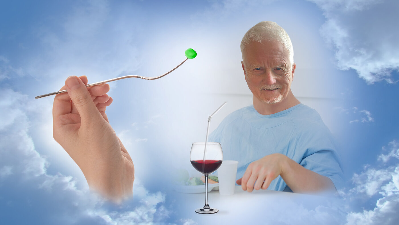 Og så skjenker hun i et romslig glass søramerikansk rødvin, knekker et sugerør og stikker den ene enden i glasset og den andre i min munn. Og så ligger jeg der og slurper i meg foredlet druesaft mens jeg føler at livet langsomt vender tilbake.