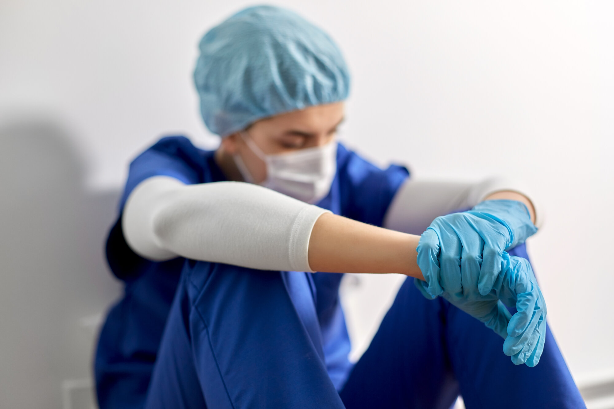Bildet viser et slitent helsepersonell med smittevernsutstyr