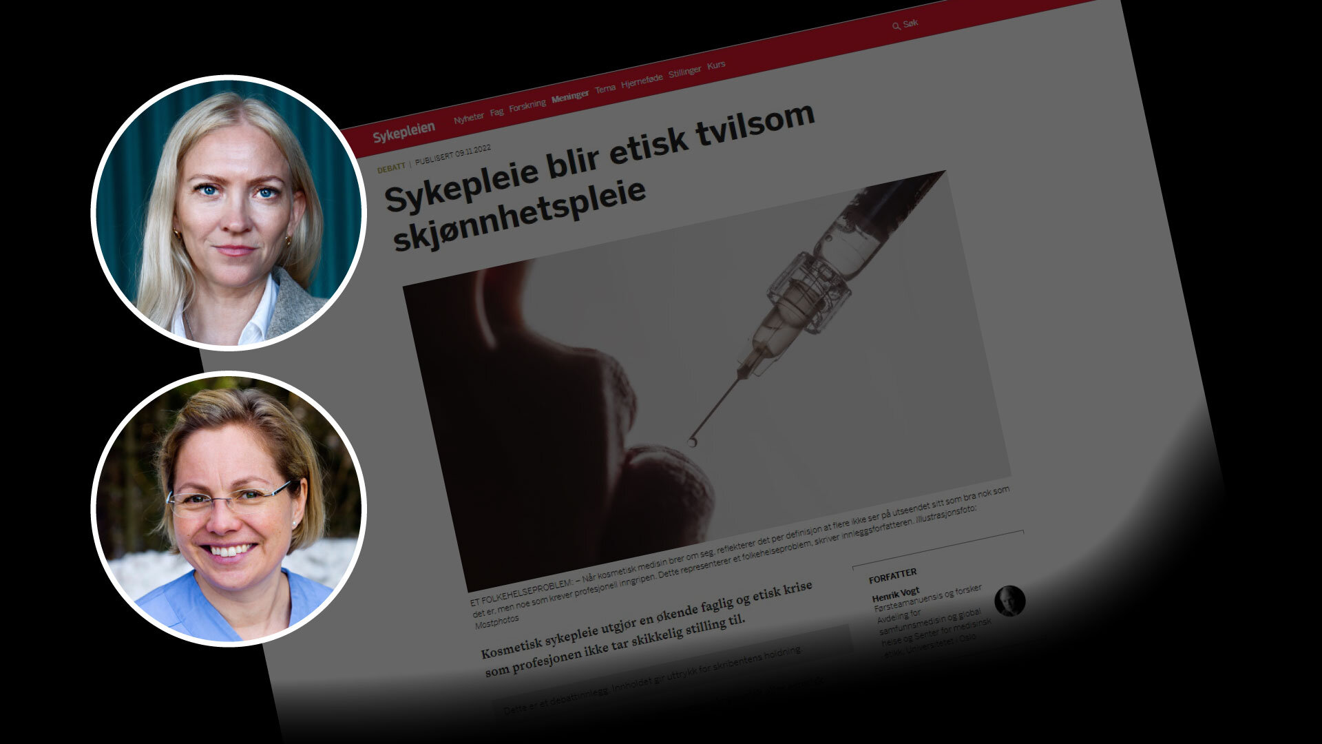 I et innlegg i Sykepleien 09.11.22 og i en debatt på Dagsnytt 18 11. november framstiller lege Henrik Vogt det som at sykepleiermangelen i Norge skyldes lekkasje til den kosmetisk dermatologiske bransjen i Norge. Han påstår også at Norsk Sykepleierforbund ikke har tatt stilling til etiske utfordringer knyttet til kosmetisk behandling. Begge deler er helt feil.