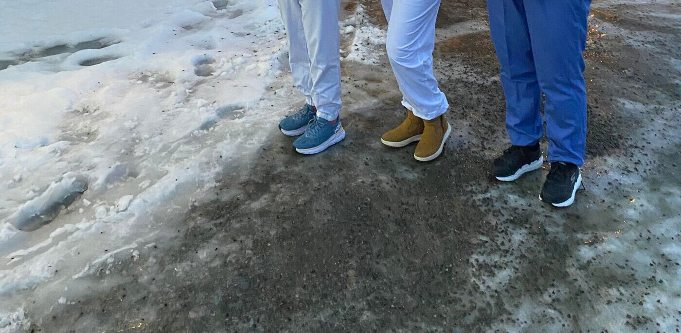 For ansatte i slike kommuner er det helt normalt å møte på en ubrøytet vei. Men selv om vi bor og jobber langt mot nord, står ikke arbeidstøyet til ansatte i hjemmetjenesten i stil med vær og vind. Ansatte får som oftest utdelt en bomullskittel og bomullsbukse. Det sier seg selv at slike klesplagg er lite egnet i snø og kulde.