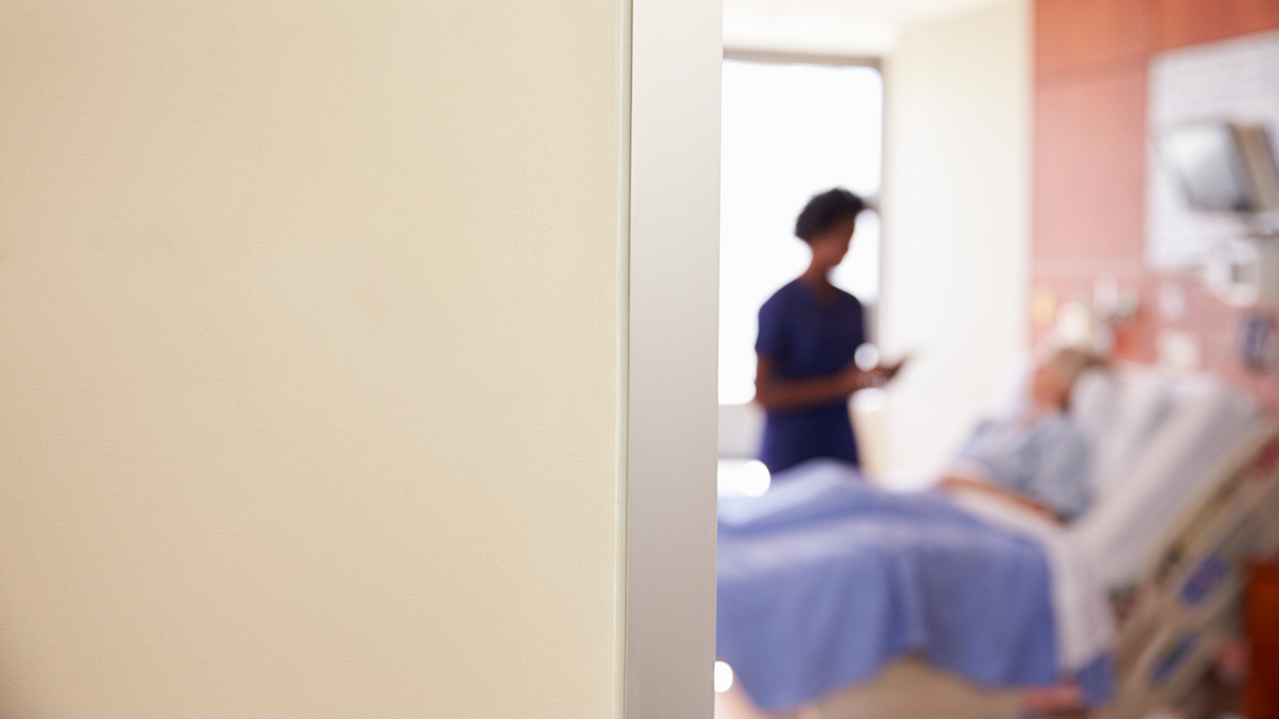 Så er man på et nytt rom på sykehuset. Nå er også barn og svigerbarn til stede. Alles oppmerksomhet er på pasienten i sengen, på pusten hennes og på ansiktet hennes. Hun er urolig, lager grimaser, stønner, og noen drar i snoren. En sykepleier kommer inn, går bort til pasienten og sier: «Det ser ut som om hun har vondt. Jeg henter smertestillende som er ordinert av lege».