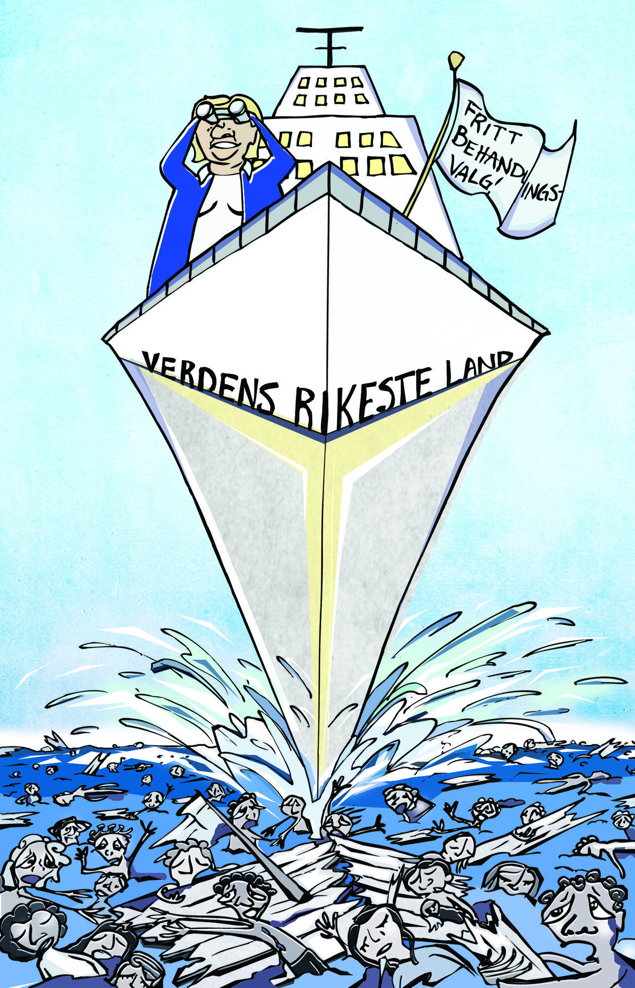 Om jeg kunne komme med et forslag på hva som burde få deg opp av sofaen, så er det situasjonen ved Europas yttergrenser. Tenk deg følgende scenario: En dag ankommer det en fiskeskøyte til Vadsø, fylt til randen av fortvilte russere. De søker asyl i Norge, fordi livet på Kolahalvøya er blitt uutholdelig. Da vil vi ta dem godt imot. Russerne vil få utdelt ulltepper og mat, de vil bli intervjuet på Dagsrevyen og bli innlosjert i den lokale sportshallen.