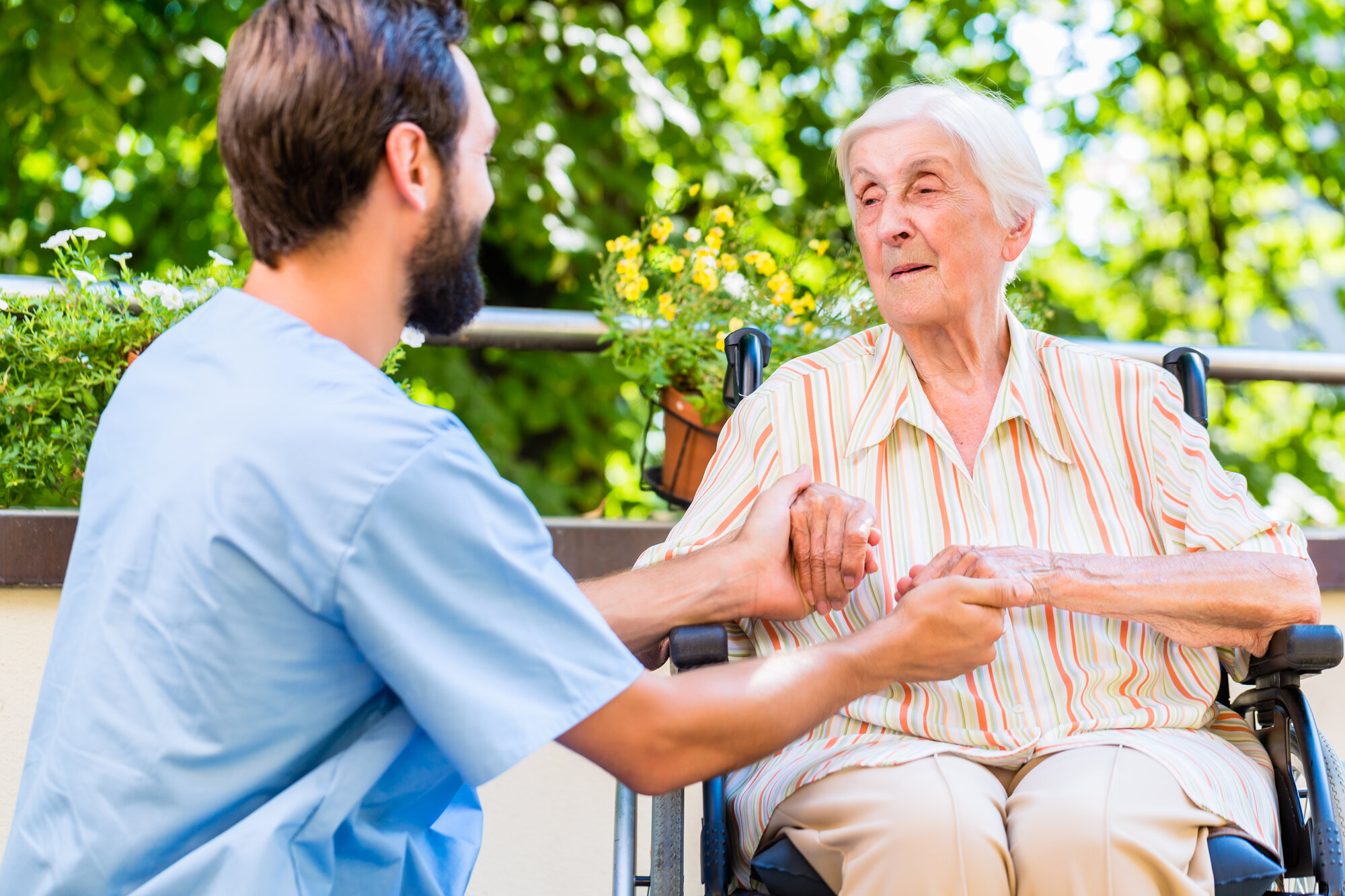 Omsorgen for pasientene ble ivaretatt av ansatte i hjemmesykepleien. Sykepleierne kartla hvilke behov pasienten hadde når det gjaldt fysiske, psykiske og sosiale behov. De forsøkte å etablere primærkontakter for særlig sårbare pasienter. De forsøkte å anerkjenne og lindre pasientens plager, både fysisk og psykososialt. Å være til stede og ta seg tid til samvær der de lyttet til hva pasienten var engstelig for, erfarte de var viktig for å få til en god relasjon. Samværet kunne dreie seg om generell sykepleie der hensikten var å støtte pasienten i å klare noe selv. I perioder når pasienten var deprimert, ukonsentrert eller urolig måtte sykepleierne ivareta mer. Å hjelpe pasienten opp, ivareta personlig hygiene, lage mat, passe på at pasienten spiste, hjelpe til med påkledning var noen av de hverdagslige arbeidsoppgavene. Gjennom å hjelpe pasientene med daglige gjøremål og aktiviteter ble det et naturlig samvær der samtale med pasienten pågikk. Å la det få litt tid, var et uttrykk og en holdning hos noen erfarne sykepleiere. Å se pasientens fortvilelse var viktig, å berolige ham og være der for ham var noen ganger vanskelig å få til på grunn av tidspress i tjenesten på grunn av for mange arbeidsoppgaver hos den enkelte sykepleier. «Hun likte det så godt», var et utsagn knyttet til avslappende bading av en angstfull pasient. Slike omsorgsfulle kroppslige tiltak bidro til at pasienten roet seg.