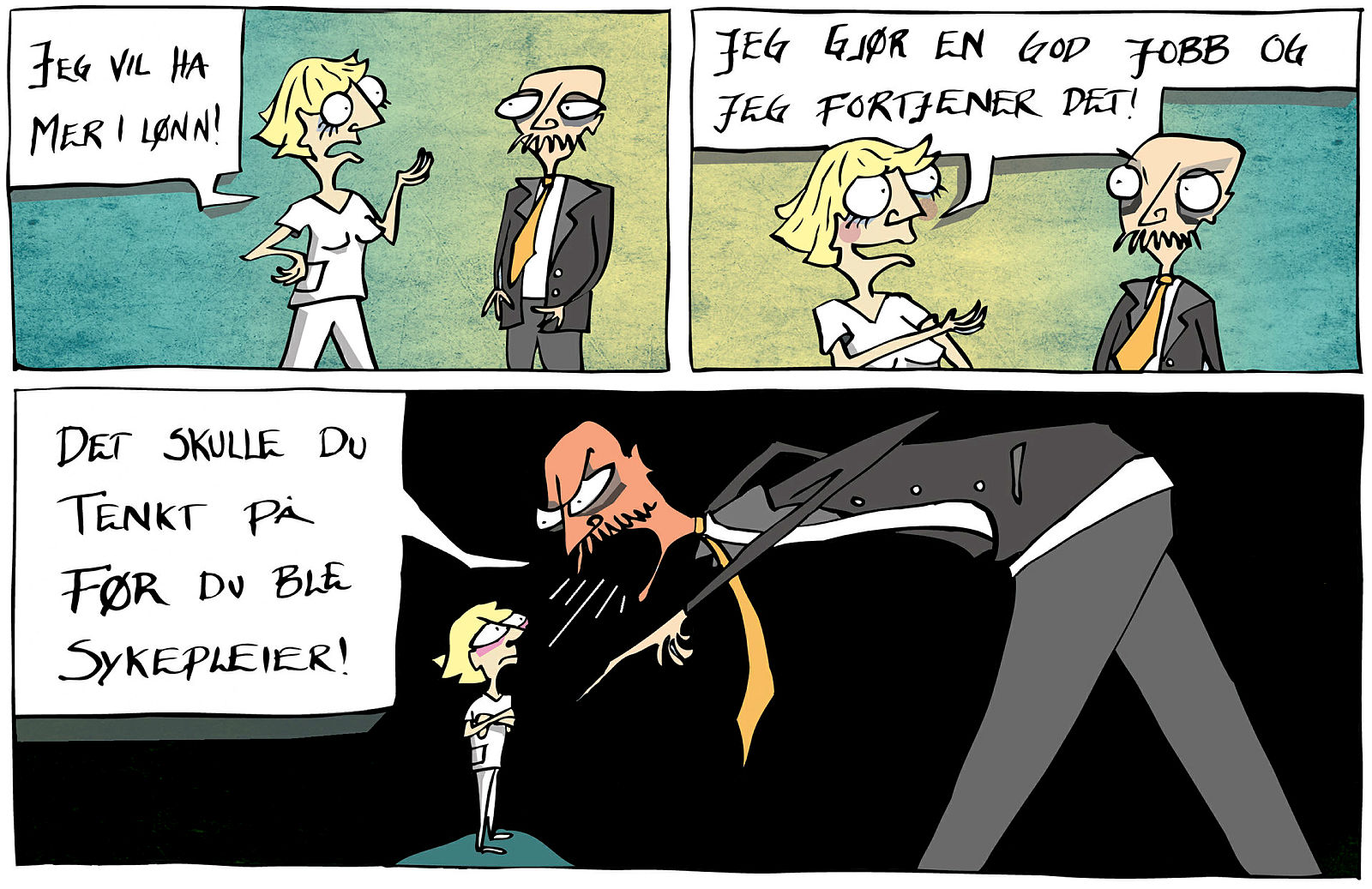 Men dette gjer at mange nyutdanna sjukepleiarar allereie første arbeidsdag vil ha nådd toppen av lønnsstigen (såframt ein ikkje tar master- eller spesialutdanning). For i dag er det ikkje slik at ein får meir utteljing for å opparbeida seg erfaring i å pleia sjuke enn å køyra lastebil.