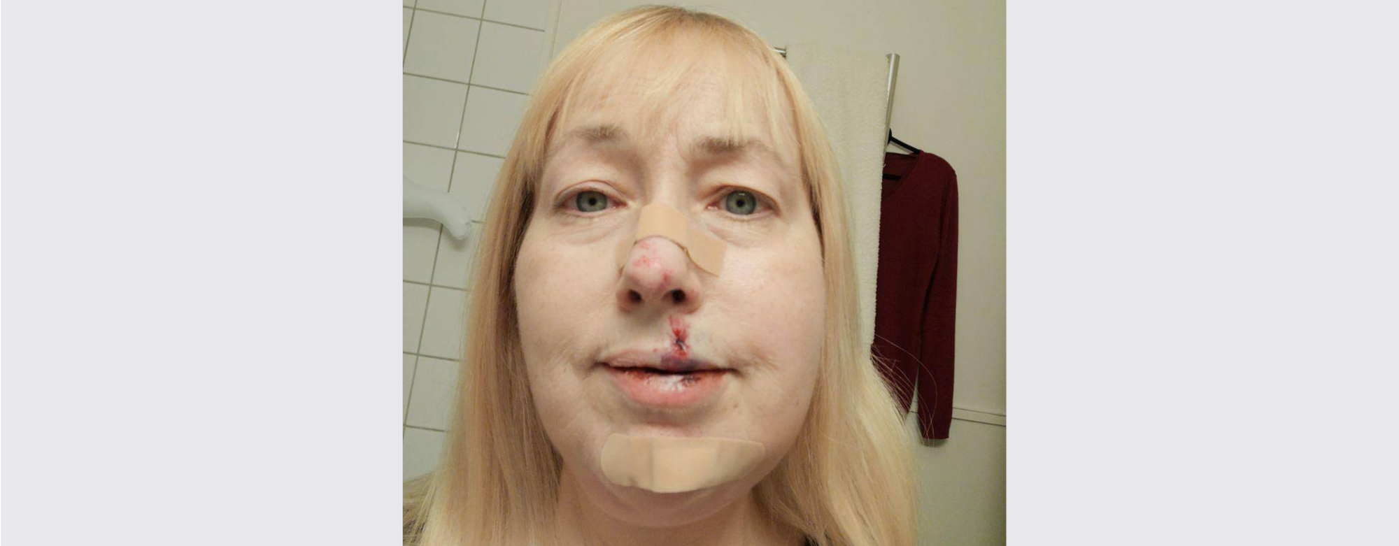 Hun hadde disse overveldende smertene og hevelsen i kjeven som ingen fant riktig ut av – iblant gjorde det så vondt at hun måtte holde seg fast i noe. Tannlegen skjønte ikke hva det kunne være, sykehuslegene heller ikke. De prøvde med en operasjon i nesen, husker ikke helt hva den gikk ut på. Etterpå stappet de en halvmeter lang smal remse opp i nesen på henne, en gas-strimle som var innsatt med noe smertestillende. Uansett, de klarte ikke å få ut hele gas-remsa, og måtte rote og grave oppi nesen på henne for å få den ut.