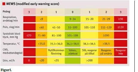 MEWS-skår på tre eller mer allerede 25 timer før hendelsen. Studien