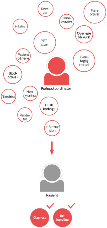 Hun har både myndighet og kompetanse til å reservere timer ved de diagnostiske avdelingene og poliklinikkene en pasient med mistanke om lungekreft behøver å være innom. I bakhodet har hun hele tiden tidsfristene.
