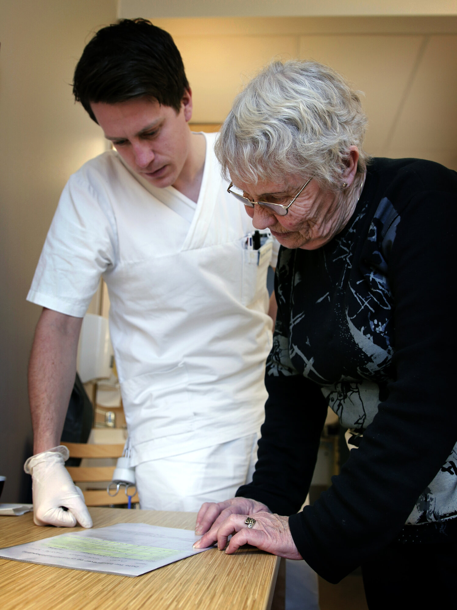 – Det er sykepleier Ulla, vær så god? Når du har time, la meg se …
